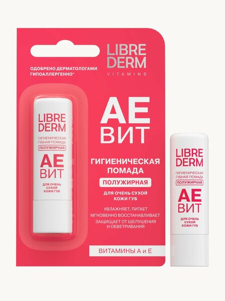 LIBREDERM Увлажняющая гигиеническая помада для губ AEBИT полужирная, защищает от шелушения и обветривания 4 г