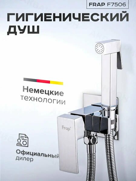 Гигиенический душ FRAP хром выполнен из латуни высокого качества, надежной и долговечной. Материал не окисляется, отлично противостоит образованию коррозии и сохраняет свои эксплуатационные качества и привлекательный внешний вид длительное время даже в условиях повышенной влажности (что очень актуально для данного вида сантехники). Гигиенический душ со смесителем представляет собой удобный альтернативный вариант стандартному биде, установка которого нежелательна либо невозможна по ряду причин. Изделие состоит из смесителя, особой лейки со шлангом и крепления-фиксатора. Эта модель способна заменить бидэ, что особенно актуально, когда в маленьком помещении нет места для его установки. Немаловажна и экономическая составляющая: такое приспособление способно привнести необходимый уровень санитарной гигиены и одновременно сэкономить средства. Таким образом, установив гигиенический душ на унитаз, вы решаете сразу две задачи. Монтируют его рядом с классическим унитазом, что позволяет быстро и удобно осуществлять санитарно-гигиенические процедуры над унитазной чашей. Душ гигиенический со смесителем применяется для гигиены тела в наиболее интимных местах. Душ биде используется после того, как человек сходил в туалет: причем это могут быть не только женщины, но и мужчины. Биде на унитаз – эффективный вариант для поддержания особо укромных, нуждающихся в частом мытье частей тела в чистоте. Душ для биде прост в использовании. Необходимо только настроить оптимальную температуру струи, установить подходящий напор и совершить процедуру. После использования биде для унитаза вам достаточно вытереть себя полотенцем или мягкими салфетками. Стильный и функциональный смеситель с гигиеническим душем встраивается в стену. Шланг обладает достаточной длиной: чему лейка для биде используется с легкостью. Кстати, лейка гигиенического душа имеет особенности. Гигиенический душ оснащается лейкой со специальным клапаном, который включает и выключает подачу воду. Лейка для гигиенического душа очень удобна также благодаря тому, что имеет меньшие габариты. Шланг для гигиенического душа отличается надежностью и долговечностью. Душ гигиенический на унитаз имеет такие преимущества, как доступная стоимость (особенно при сравнении с отдельным биде), функциональность и удобство использования. Смеситель с гигиеническим душем – это отличное решение для санузла с маленькой площадью. Устройство можно установить даже в самый компактный туалет, где может разместиться исключительно одни унитаз. Душ биде создаст условия для максимального комфорта водных процедур, что очень важно для детей, людей в возрасте и инвалидов. Биде смеситель может использоваться не только для ополаскивания тела, но также для чистки обуви, лотка питомца, ночного горшочка и прочих вещей, мытье которых не хочется выполнять над ванной либо раковиной. Помимо этого, смеситель биде делает проще чистку унитаза. Удобный гигиенический душ для унитаза позволит помыть со всех сторон, даже в сложных областях. Главное достоинство, которым обладает смеситель для гигиенического душа, заключается в возможности регулярно осуществлять гигиенические процедуры интимной области, что очень полезно. Смеситель для биде – это лучший вариант по сравнению с использованием только туалетно