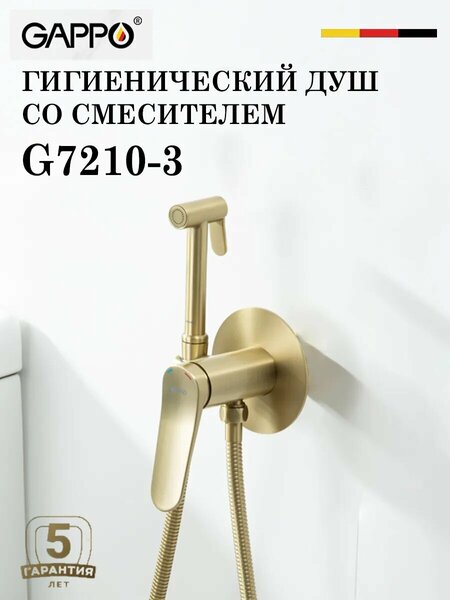Качественный и современный смеситель с гигиеническим душем Gappo G7210-3, у лейки для биде одна рукоять для того, чтобы регулировать напор воды. Смеситель для биде устанавливается прямо внутрь стены, что позволит скрыть функциональные элементы, спрятать некоторые элементы монтажа. Латунная душевая лейка работает в одном режиме. Высокопрочный душевой шланг 1200 мм в оплетке двойного вальцевания с трубкой из синтетического каучука вращающийся на 360 градусов. Аэратор Neoperl гарантирует ровный и мягкий поток воды без брызг. Основной материал корпуса - латунь, проверенный временем материал, который обеспечивает идеальное напыление золото сатиновое покрытия. Круглая форма душ для биде делает его оригинальным и аутентичным. Модель подобного типа подходит для кухни или ванной комнаты, оформленных в необычном стиле. Важно: после того, как вы завершите мытье, прибор к которому присоединяется шланг с лейкой, необходимо переводить в режим отключения от напора воды, то есть попросту выключать. Постоянное давление на стенки шланга способствует стремительному износу и очень сильно сокращает время его использования. Серия G10-3: - Душевая система: G2410-3 (арт. 480734323) - Смеситель для раковины: G1010 (арт. 480699384) - Душевая система скрытого монтажа: G7110-3 - Смеситель для ванны: G3210-3 (арт. 480934628) - Смеситель для накладной раковины: G1010-23 (арт. 480924831)
