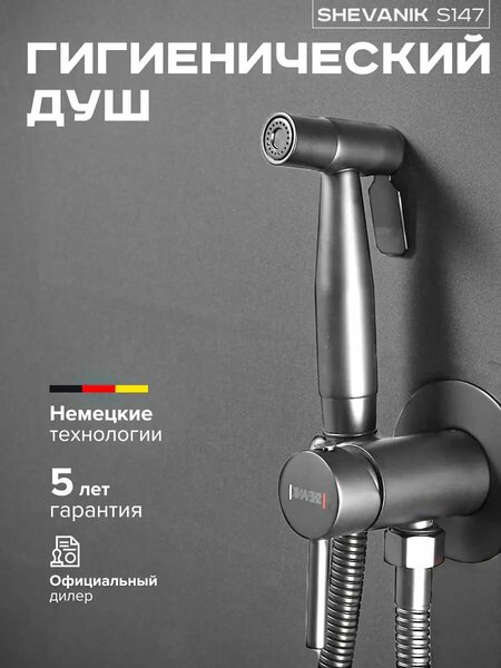 Гигиенический душ SHEVANIK оружейная сталь, графит выполнен из латуни высокого качества, надежной и долговечной. Материал не окисляется, отлично противостоит образованию коррозии и сохраняет свои эксплуатационные качества и привлекательный внешний вид длительное время даже в условиях повышенной влажности (что очень актуально для данного вида сантехники). Гигиенический душ со смесителем представляет собой удобный альтернативный вариант стандартному биде, установка которого нежелательна либо невозможна по ряду причин. Изделие состоит из смесителя, особой лейки со шлангом и крепления-фиксатора. Эта модель способна заменить бидэ, что особенно актуально, когда в маленьком помещении нет места для его установки. Немаловажна и экономическая составляющая: такое приспособление способно привнести необходимый уровень санитарной гигиены и одновременно сэкономить средства. Таким образом, установив гигиенический душ на унитаз, вы решаете сразу две задачи. Монтируют его рядом с классическим унитазом, что позволяет быстро и удобно осуществлять санитарно-гигиенические процедуры над унитазной чашей. Душ гигиенический со смесителем применяется для гигиены тела в наиболее интимных местах. Душ биде используется после того, как человек сходил в туалет: причем это могут быть не только женщины, но и мужчины. Биде на унитаз – эффективный вариант для поддержания особо укромных, нуждающихся в частом мытье частей тела в чистоте. Душ для биде прост в использовании. Необходимо только настроить оптимальную температуру струи, установить подходящий напор и совершить процедуру. После использования биде для унитаза вам достаточно вытереть себя полотенцем или мягкими салфетками. Стильный и функциональный смеситель с гигиеническим душем встраивается в стену. Шланг обладает достаточной длиной: чему лейка для биде используется с легкостью. Кстати, лейка гигиенического душа имеет особенности. Гигиенический душ оснащается лейкой со специальным клапаном, который включает и выключает подачу воду. Лейка для гигиенического душа очень удобна также благодаря тому, что имеет меньшие габариты. Шланг для гигиенического душа отличается надежностью и долговечностью. Душ гигиенический на унитаз имеет такие преимущества, как доступная стоимость (особенно при сравнении с отдельным биде), функциональность и удобство использования. Смеситель с гигиеническим душем – это отличное решение для санузла с маленькой площадью. Устройство можно установить даже в самый компактный туалет, где может разместиться исключительно одни унитаз. Душ биде создаст условия для максимального комфорта водных процедур, что очень важно для детей, людей в возрасте и инвалидов. Биде смеситель может использоваться не только для ополаскивания тела, но также для чистки обуви, лотка питомца, ночного горшочка и прочих вещей, мытье которых не хочется выполнять над ванной либо раковиной. Помимо этого, смеситель биде делает проще чистку унитаза. Удобный гигиенический душ для унитаза позволит помыть со всех сторон, даже в сложных областях. Главное достоинство, которым обладает смеситель для гигиенического душа, заключается в возможности регулярно осуществлять гигиенические процедуры интимной области, что очень полезно. Смеситель для биде – это лучший вариант по сравнению с использова