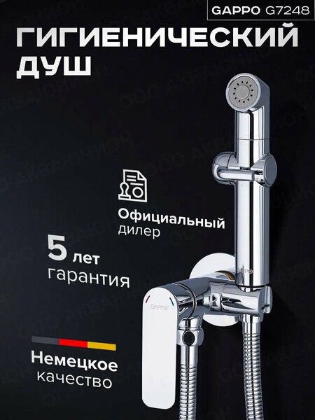 Встраиваемый гигиенический душ Gappo G7248-1 хром, выполнен из латуни высокого качества, надежной и долговечной. Материал не окисляется, отлично противостоит образованию коррозии и сохраняет свои эксплуатационные качества и привлекательный внешний вид длительное время даже в условиях повышенной влажности (что очень актуально для данного вида сантехники). После того как гигиенические процедуры выполнены, смеситель закрывается в обязательном порядке, чтобы прекратилась подачу воды в лейку. Отметим, что клапан лейки и шланг не рассчитаны на сверхвысокое давление. Когда смеситель закрыт, следует устранить остаточное давление, нажав на рычаг. Если соблюдать эти простые требования, то смеситель гигиенический прослужит максимально долго без поломок и необходимости менять те или иные компоненты. Изделие состоит из смесителя, особой лейки со шлангом и крепления-фиксатора. Эта модель способна заменить бидэ, что особенно актуально, когда в маленьком помещении нет места для его установки. Для пуска воды необходимо нажать на рычаг, который находится на самой лейке. Шланг обладает достаточной длиной, и лейка для биде используется с легкостью. Помимо этого, смеситель биде делает проще чистку унитаза. Удобный гигиенический душ для унитаза позволит помыть со всех сторон. Главное достоинство, которым обладает смеситель для гигиенического душа, заключается в возможности регулярно осуществлять гигиенические процедуры интимной области, что очень полезно. Смеситель для биде – это лучший вариант по сравнению с использованием только туалетной бумаги. Биде на унитаз имеет скрытое подключение. Изделие отличается максимальным удобством при использовании и долговечности благодаря надежной конструкции и качественным материалам. Гигиенический душ белый будет прекрасно смотреться в ванной комнате с любым интерьером. Смеситель для гигиенического душа имеет оптимальные размеры и форму. Длина шланга составляет 120 см, чего вполне достаточно для комфортного использования.