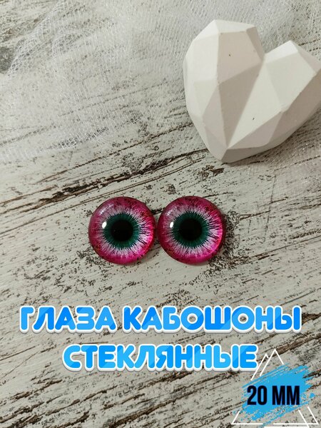 Глаза крупные - 20мм! В наборе 1 пара глаз (2 штуки). Основа глазок - плоская, можно приклеивать на клей, подходящий к материалам изделия, или запекать с полимерной глиной. Стеклянные глазки очень красивые, а четкая линза позволяет получить неповторимый эффект живого глаза, поэтому глаза из стекла оживят Ваши творения и вдохнут жизнь в Ваши творческие работы. Фурнитура для игрушек подойдет для любого вида творчества. Стеклянные кабошоны - прекрасный материал и аксессуар для рукоделия, который станет отличным подарком для рукодельницы. Будем рады Вас видеть среди покупателей в нашем магазине FRESH MARKET!