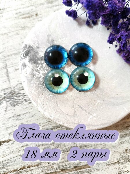 Глаза НЕсамоклеящиеся, белую подложку НЕ отдирать! Приклеивать на клей, подходящий к материалам изделия, или запекать с полимерной глиной. Глаза крупные - 18мм! Купол высокий - 8.3 мм. В наборе 2 пары глаз (4 штуки). Основа глазок - плоская, можно приклеивать на клей, подходящий к материалам изделия, или запекать с полимерной глиной. Стеклянные глазки очень красивые, а четкая линза позволяет получить неповторимый эффект живого глаза, поэтому глаза из стекла оживят Ваши творения и вдохнут жизнь в Ваши творческие работы. Фурнитура для игрушек подойдет для любого вида творчества. Стеклянные кабошоны - прекрасный материал и аксессуар для рукоделия, который станет отличным подарком для рукодельницы. Будем рады Вас видеть среди покупателей в нашем магазине FRESH MARKET!