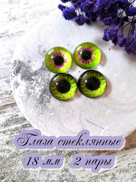 Глаза НЕсамоклеящиеся, белую подложку НЕ отдирать! Приклеивать на клей, подходящий к материалам изделия, или запекать с полимерной глиной. Глаза крупные - 18мм! Купол высокий - 8.3 мм. В наборе 2 пары глаз (4 штуки). Основа глазок - плоская, можно приклеивать на клей, подходящий к материалам изделия, или запекать с полимерной глиной. Стеклянные глазки очень красивые, а четкая линза позволяет получить неповторимый эффект живого глаза, поэтому глаза из стекла оживят Ваши творения и вдохнут жизнь в Ваши творческие работы. Фурнитура для игрушек подойдет для любого вида творчества. Стеклянные кабошоны - прекрасный материал и аксессуар для рукоделия, который станет отличным подарком для рукодельницы. Будем рады Вас видеть среди покупателей в нашем магазине FRESH MARKET!
