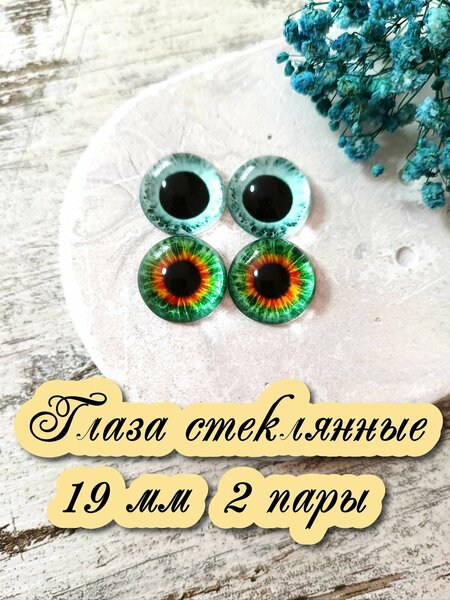 Глаза НЕсамоклеящиеся, белую подложку НЕ отдирать! Приклеивать на клей, подходящий к материалам изделия, или запекать с полимерной глиной. Глаза крупные - 19мм! Купол высокий - 9.6мм. В наборе 2 пары глаз (4 штуки). Стеклянные глазки очень красивые, а четкая линза позволяет получить неповторимый эффект живого глаза, поэтому глаза из стекла оживят Ваши творения и вдохнут жизнь в Ваши творческие работы. Фурнитура для игрушек подойдет для любого вида творчества. Стеклянные кабошоны - прекрасный материал и аксессуар для рукоделия, который станет отличным подарком для рукодельницы. Будем рады Вас видеть среди покупателей в нашем магазине FRESH MARKET!