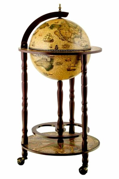 Глобус бар "Лаура" напольный, сфера 33 Глобус бар на колесиках с картой морских сражений 7,2 (кг). Верхняя сфера глобуса вращается, на внутренне части глобуса имеется античный рисунок. Имеется столик, где можно расположить бокалы, также присутствует нижняя подставка для хранения бутылок. Материалы используется дерево, латунные детали, пластиковые вставки. Характеристики: Размеры изделия: 44х44х88 (см); Размер сферы глобус бара: 33 (см). Вместительность в глобус: 2-3 бутылки до 1 л (по бокам ставятся бокалы, либо небольшие напитки), и на нижней части глобуса: 6-9 бутылок до 2 л. Комплектация: Инструкция и детали для сборки глобуса. Глобус-бар идеально подойдет для любого интерьера, дома и дачи. Изделие упаковано по новой технологии, благодаря которой прибудет к вам в целости и сохранности! Мы даем гарантию качества нашей продукции! Тысячи положительных эмоций от покупок в нашем магазине! Сделайте оригинальный сюрприз для любимого, мужа, брата, друга, отца, коллеги, родственника.
