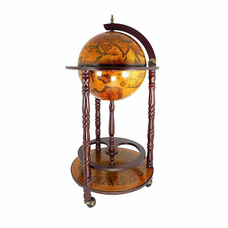 Декоративный глобус бар имеет несколько углублений -держателей в нижнем отсеке и несколько углублений для напитков и фужеров в верхнем отсеке. Данный глобус бар подходит тем, кто любит основательность и размах. Глобус бар снабжен колесиками, что помогает его легко перемещать в нужное место. Правила ухода: Регулярно удалять пыль. Беречь от влаги. Сертификация: Товар не подлежит обязательной сертификации. Состав: MDF, дерево, полистирол Производство: Китай.