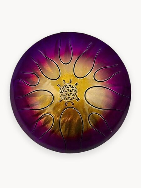Глюкофон «Душа 10 нот» - это музыкальный инструмент с богатым звучанием, кардинально отличающийся от других производителей мира, который будет радовать вас чистым и глубоким звуком, созданным по уникальной авторской технологии. Язычковый барабан от бренда Dzen Drum обладает уникальным звукотерапевтическим эффектом, дарит состояние спокойной радости, вдохновения и удовольствия. Популярный инструмент настроен на полезные для оздоровления организма человека частоты строя нот 432 Гц. У него много лепестков - 10 нот, которые извлекаются с помощью двух металлических палочек с мягкими наконечниками. Глюкофон представлен в форме круга диаметром 28 см. Красивые переходы цвета - золотистого и насыщенного фиолетового оттенка изысканно переливаются на свету, в том числе благодаря узорной шлифовке. В комплекте глюкофон и две палочки, минусовки (аудиоритмы) и курс обучения в домашних условиях. Игра на Дзен Драм Душа поможет создавать самые разные мелодии - от красивых минорных, спокойных для творчества и медитативных для расслабления, до энергичных и заряжающих. Лепестковый барабан полезен для развития музыкального слуха и чувства ритма, способностей к музицированию и импровизации. Благодаря игре на нем создаются межполушарные связи и появляются новые нейронные, развивается эмоциональный интеллект, творческое мышление. Это интересное хобби, которое уже смогло завоевать сердца взрослых и детей, начинающих музыкантов. Такой инструмент выбирают для приятного времяпровождения, домашних импровизаций, звукотерапии, релаксации, медитации, для занятий йогой, для увлекательного путешествия внутрь себя, которое поможет познать свой внутренний мир и достичь баланса. Это идеальный подарок для членов семьи и друзей, будь то взрослый или ребенок, для мамы на юбилей или девочки - дочки на день рождения, приятный сюрприз для сестры или любимой девушки! В линейке бренда представлены качественные модели в разных стилях оформления, с различным количеством нот и возможностей. Сделано в России. У нас есть акции и распродажи, Вы можете купить наши товары в подарок со скидкой!