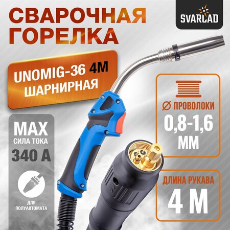 Сварочная горелка UnoMIG-36 4м предназначена для сварки MIG/MAG при подключении к аппаратам полуавтоматической сварки для выполнения различного вида сварочных работ. Удобная рукоятка с кнопкой управления сварочным процессом и эргономичный дизайн горелки обеспечивают максимальный комфорт во время работы. Шарнирное соединение рукоятки и рукава снижает нагрузку на кисть и запястье. технические характеристики: ПВ при максимальном токе, %: 60 Тип охлаждения: воздушное Максимальный сварочный ток MIX (Ar/CO2), А: 32 Максимальный сварочный ток CO2, А: 340 Процесс сварки: MIG/MAG Тип разъёма подключения: евро Управление горелкой: кнопка Длина рукава горелки, м: 4 Диаметр проволоки, мм: 0,8 / 1,0 / 1,2 / 1,6