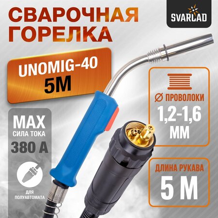 Сварочная горелка UnoMIG-40 5м предназначена для сварки MIG/MAG при подключении к аппаратам полуавтоматической сварки для выполнения различного вида сварочных работ. Удобная рукоятка с кнопкой управления сварочным процессом и эргономичный дизайн горелки обеспечивают максимальный комфорт во время работы. Шарнирное соединение рукоятки и рукава снижает нагрузку на кисть и запястье. технические характеристики: ПВ при максимальном токе, %: 60 Тип охлаждения: воздушное Максимальный сварочный ток MIX (Ar/CO2), А: 360 Максимальный сварочный ток CO2, А: 380 Процесс сварки: MIG/MAG Тип разъёма подключения: евро Управление горелкой: кнопка Длина рукава горелки, м: 5 Диаметр проволоки, мм: 1,2 / 1,6