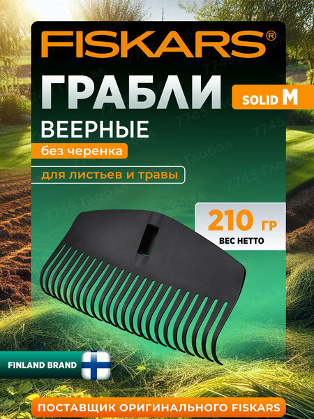 Грабли садовые веерные без черенка FISKARS Solid M 1063089, для сбора листьев и травы