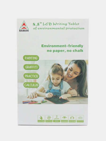 Дизайн дружелюбный и экологически чистый: вы можете нажать кнопку стирания, чтобы очистить, нажмите кнопку блокировки, чтобы зафиксировать, не требуется Зарядка или подключение (батарейки входят в комплект). Доска для рисования-это бесконечный лист бумаги! Доска может быть начерчена снова и снова, экономя по крайней мере 10000 штук бумаги в год.