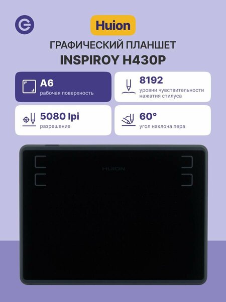 Графический планшет HUION Inspiroy H430P Без ПО, официальная гарантия