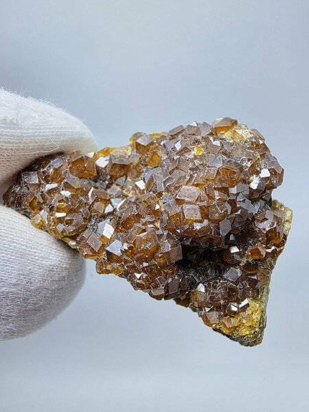 Кристаллы граната андрадита. Размер 47х30х23 мм, вес 38 г. Минерал гранат — это камень, известный своей красотой и магическими свойствами. Гранаты бывают разных цветов, включая красный, зелёный, жёлтый, фиолетовый и чёрный. Они обладают стеклянным блеском, кубической сингонией, неровным изломом и средним уровнем твёрдости по шкале Мооса (6,5–7,5). Магические свойства граната включают способность влиять на энергетику своего обладателя, помогать в обретении власти над окружающими, а также привлекать любовь и счастье. Красные гранаты помогают обрести душевное равновесие, зелёные положительно влияют на пунктуальность, а все остальные цвета благотворно отражаются на жизни творческих людей. Качественный камень гранат востребован в ювелирном деле. Кристаллы, щётки и друзы гранатов популярны у коллекционеров. Камень натуральный, поэтому может иметь естественные трещинки, включения, неровности поверхности, рисунка, цвета, что подтверждает и подчеркивает его природное происхождение. Цвет на фото может несколько отличаться от цвета в реальности за счет разных настроек мониторов и особенностей освещения при фотографировании.