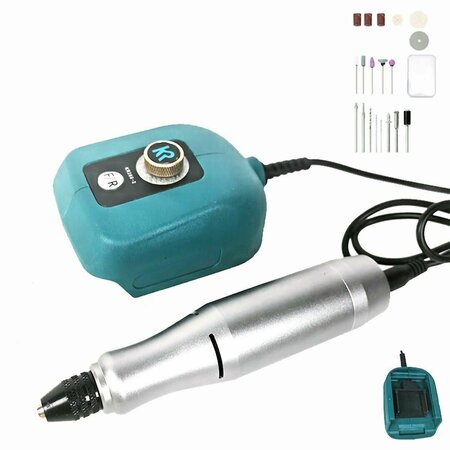 Гравер под аккумулятор 18V серии LXT с насадками — это портативный инструмент для гравировки на различных поверхностях. Его компактные размеры и легкий вес делают его удобным для работы в любых условиях. Благодаря своей портативности и удобству использования, он подходит как для профессиональных гравировщиков, так и для любителей, желающих воплотить свои творческие идеи. Особенностью гравера является наличие различных насадок, позволяющих выполнять разнообразные виды гравировки на металлических, стеклянных, деревянных и других поверхностях. Насадки легко меняются, обеспечивая удобство в использовании. Характеристики: Номинальная мощность: 40 Вт Скорость холостого хода: 18000 об/мин. Диаметр шлифовального круга: макс. 3,2 мм Размер патрона: 3,2 мм Комплектация: 1. Аккумуляторный гравер под аккумулятор 18V серии LXT – 1шт 2. Ключи фиксаторы - 2шт 3. Комплект аксессуаров - 1шт 4. Инструкция – 1шт 5. Коробка Поставляется без аккумулятора и зарядного устройства! Комплектация аксессуаров в наборе: Овальный стержень – 1шт Резиновое колесо – 1шт Диск пильный – 1шт Алмазные шлифовальные иглы – 2шт Полировальные диски – 2шт Абразивного круга – 3шт Сверла (0.5/1.0/1.5 мм) Шлифовальных головок – 5шт Пластиковый контейнер для хранения – 1шт
