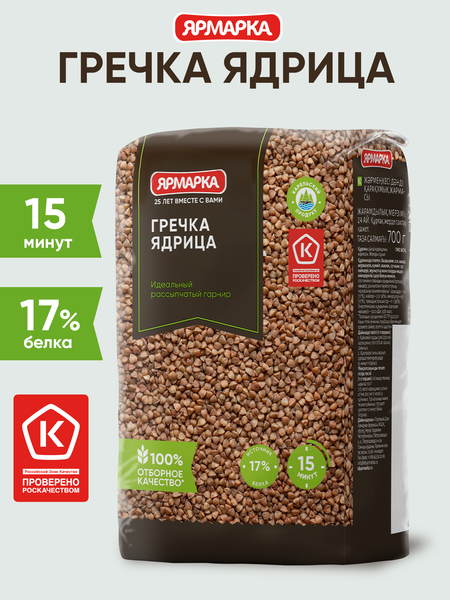 Гречка ядрица от бренда Ярмарка обладает насыщенным цветом, характерным для «обжаренной» крупы ароматом и ярко выраженным вкусом. Спектр ее применения невероятно широкий, из нее можно приготовить блюда на завтрак, обед и ужин. Не разваренная и рассыпчатая она выступит в качестве идеального гарнира, а если в тарелку дополнительно добавить кусочек мягкого сливочного масла и подать ее со стаканом молока, получится вкусная и полезная, воздушная гречневая каша. Cпособов применения гречки существует огромное количество. Ее можно использовать для супов, котлеток, приготовить в горшочке или на пару. Гречка идеально сочетается с грибами, овощами, мясом, птицей, печенью, сливочным или сметанным соусом. Крупа отличается быстрым и простым приготовлением, станет находкой для всех приверженцев ЗОЖ и правильного питания (ПП), идеально дополнит диетическое и веганское меню. Пользу гречки сложно переоценить. Она богата пищевыми волокнами, отличается оптимальным соотношением белков, жиров и углеводов, издавна славится целебными свойствами, способствует снижению уровня холестерина и похудению, способствует укреплению стенок сосудов, насыщает питательными веществами.