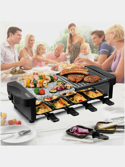 Раклетница Kitfort KT-1647 — это устройство для приготовления разнообразных закусок, а также она может объединить вокруг себя теплую компанию друзей. Пока на сковородках плавится сыр, ваши гости сами приготовят себе начинку по своему вкусу: обжарят кусочки картофеля или перца, приготовят стейк или колбаски. Вы можете плавно менять температуру при помощи регулятора на корпусе прибора. Около регулятора расположен индикатор нагрева. ⤵⤵ Устройство оснащено ТЭНом, под которым имеются специальные углубления для порционных сковородок для сыра. Сверху ТЭН закрывает панель с антипригарным покрытием, на которой можно обжаривать мясо, грибы, колбаски, овощи. ТЭН раклетницы нагревает панель для гриля и одновременно расплавляет сыр в сковородках. Панель можно снять и установить вместо нее шпажки с нанизанным на них мясом, овощами и колбасками. В инструкции вы можете найти рецепты для приготовления различных раклетов и блинчиков. Возможности и функции: ✅ плавная регулировка температуры ✅ световой индикатор нагрева ✅ панель с антипригарным покрытием ✅ 8 порционных сковородок с антипригарным покрытием ✅ 8 шампуров ✅ противоскользящие ножки размер панели: 240 х 370 мм размер дна порционной сковородки: 70 х 70 мм длина сетевого шнура 1 м максимальная температура: 225° C •• Официальная гарантия по чеку: 12 месяцев. •• Бесплатно доставим в любую точку Узбекистана за один день. •• Персональный менеджер всегда онлайн и всегда поможет. •• Ваши отзывы о качестве нашей работы помогают нам стать лучше -)