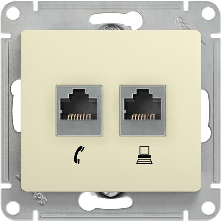 Розетка Schneider Electric «Glossa» служит для подключения кабеля телефонного и компьютерного. Обратите внимание: товар предназначен для установки под рамку. ХарактеристикиСтепень защиты: IP 20. Цвет: бежевый. Для сборки полноценного изделия используйте рамку.