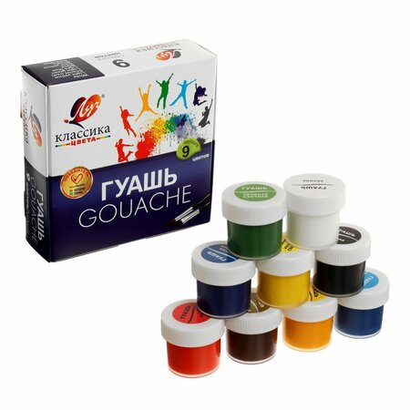 Гуашь ЛУЧ Классика 9 цветов 20мл, баночки в картонной упаковке