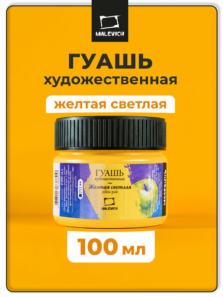 Гуашь Малевичъ Водорастворимая, комфортная для работы краска с приятной кремовой консистенцией и повышенной концентрацией пигмента. Высокая кроющая способность позволяет наносить четкие мелкие непрозрачные детали светлых тонов на фон темного оттенка. После высыхания поверхность становится бархатисто-матовой. Подходит как для начинающих, так и для профессиональных иллюстраторов. Гуашь Малевич в удобной пластиковой банке с широким горлом удобно набирать мастихином. Перед использованием краску обязательно надо перемешать.