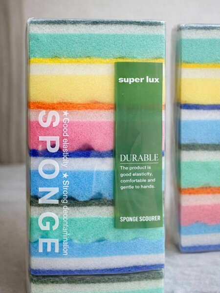 Губки для мытья посуды Super Lux, набор 6 шт, кухонные, разноцветные