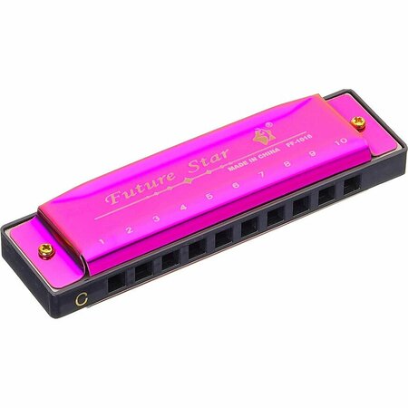 Губная гармошка Future Star FF-1016 PK цвет - розовый, диатоническая, тональность - до мажор, 10 отверстий, 20 звуков, язычки медь, основание металл, пластиковый корпус, накладки – металлические хромированные, упаковка - пластиковый футляр черного цвета.
