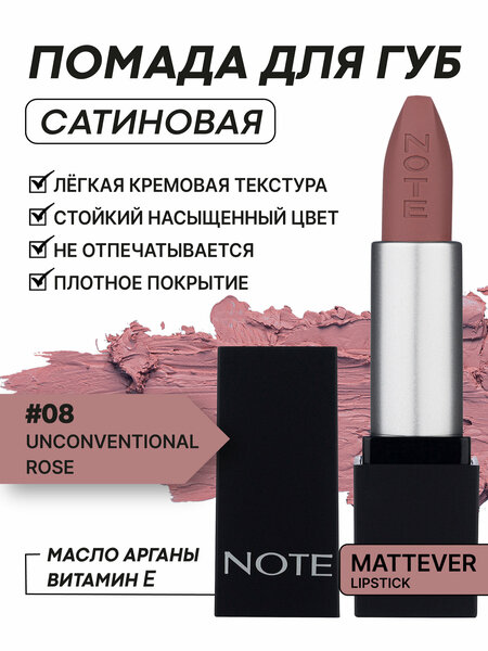 Губная помада Mattever от Note – это средство для создания стойкого матового макияжа губ. Объем упаковки составляет 4 г, что делает помаду удобной для использования и ношения в косметичке. Преимущества:
