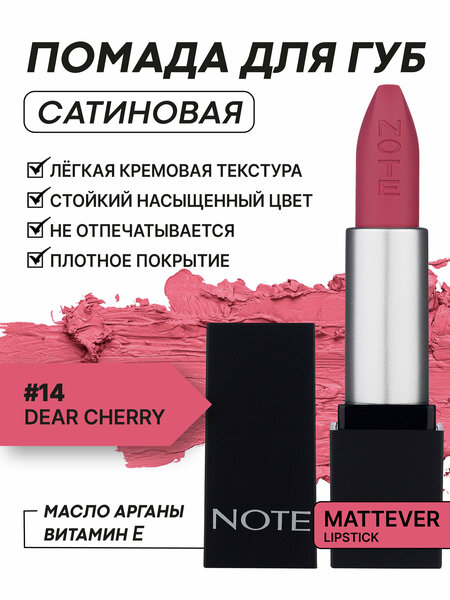 Губная помада Mattever от Note – это средство для создания стойкого матового макияжа губ. Объем упаковки составляет 4 г, что делает помаду удобной для использования и ношения в косметичке. Преимущества: