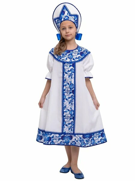 Представляем вам нашу новинку – карнавальный костюм “Гжель Хороводная”, вдохновленный изящной красотой знаменитой гжельской росписи! Этот наряд станет прекрасным выбором для любого праздника и позволит вашей девочке окунуться в мир русских народных традиций. Замеры (см): Длина изделия: 79 Ширина по груди (полуобхват): 41 Длина рукава: 23 Костюм “Гжель Хороводная” – это сочетание элегантности, комфорта и неповторимого русского стиля! Особенности костюма: Платье свободного кроя: Платье широкого кроя идеально подойдет девочкам разной комплекции, обеспечивая комфорт и свободу движений. Оригинальный гжельский узор: Уникальный гжельский узор, разработанный нашими мастерами и нанесенный на ткань, делает этот костюм по-настоящему особенным и запоминающимся. Удобный и красивый кокошник: Оригинальный кокошник, украшенный в стиле гжельской росписи, надежно фиксируется под волосами большим бантом и прекрасно держит форму, завершая образ русской красавицы. Преимущества: Универсальный крой: Подходит для девочек разной комплекции. Уникальный дизайн: Оригинальный гжельский узор, созданный нашими мастерами. Комфорт: Платье не сковывает движения, позволяя активно участвовать в праздничных мероприятиях. Безопасность: Использованы качественные и безопасные материалы. Простота ухода: Легко стирается и гладится. Запоминающийся образ: Ваша девочка будет выглядеть неповторимо на любом празднике. Подарите своей девочке волшебный праздник с карнавальным костюмом “Гжель Хороводная”! Пусть она почувствует себя настоящей русской красавицей, окутанной очарованием и красотой русских народных традиций!