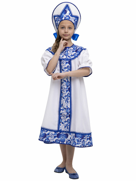 Представляем вам нашу новинку – карнавальный костюм “Гжель Хороводная”, вдохновленный изящной красотой знаменитой гжельской росписи! Этот наряд станет прекрасным выбором для любого праздника и позволит вашей девочке окунуться в мир русских народных традиций. Костюм “Гжель Хороводная” – это сочетание элегантности, комфорта и неповторимого русского стиля! Особенности костюма: Платье свободного кроя: Платье широкого кроя идеально подойдет девочкам разной комплекции, обеспечивая комфорт и свободу движений. Оригинальный гжельский узор: Уникальный гжельский узор, разработанный нашими мастерами и нанесенный на ткань, делает этот костюм по-настоящему особенным и запоминающимся. Удобный и красивый кокошник: Оригинальный кокошник, украшенный в стиле гжельской росписи, надежно фиксируется под волосами большим бантом и прекрасно держит форму, завершая образ русской красавицы. Преимущества: Универсальный крой: Подходит для девочек разной комплекции. Уникальный дизайн: Оригинальный гжельский узор, созданный нашими мастерами. Комфорт: Платье не сковывает движения, позволяя активно участвовать в праздничных мероприятиях. Безопасность: Использованы качественные и безопасные материалы. Простота ухода: Легко стирается и гладится. Запоминающийся образ: Ваша девочка будет выглядеть неповторимо на любом празднике. Подарите своей девочке волшебный праздник с карнавальным костюмом “Гжель Хороводная”! Пусть она почувствует себя настоящей русской красавицей, окутанной очарованием и красотой русских народных традиций!