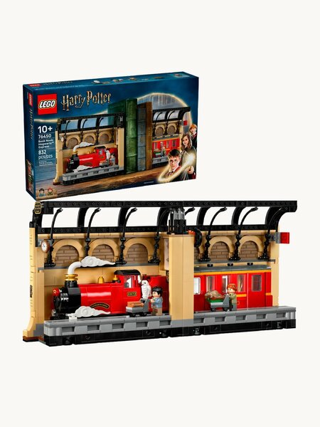 Первый в истории набор LEGO® Harry Potter™ Book Nook: Hogwarts™ Express позволяет воссоздать платформу 9¾™ вокзала Кингс-Кросс. В комплекте идут минифигурки Гарри Поттера и Рона Уизли™, а также фигурки Букли и Коросты. Набор предлагает настраиваемую композицию, что делает его идеальным для демонстрации книг.