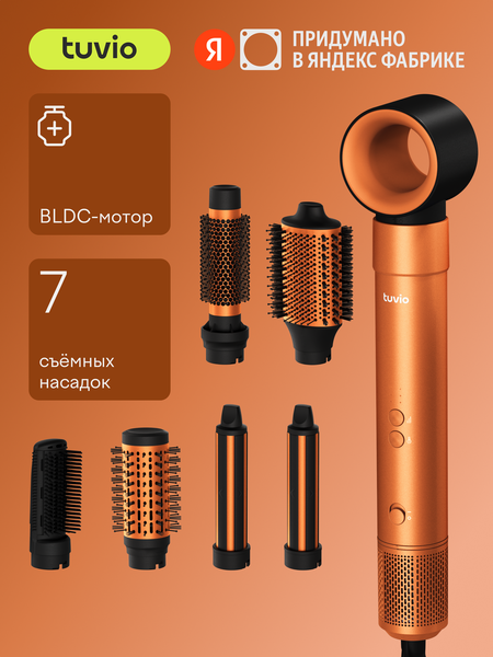 Tuvio — это бренд удобной техники, придуманный в Яндексе. ㅤ Фен-щётка Tuvio HBI1414 из новой цветной линейки — это стайлер с комплектом съёмных насадок, созданный для разных типов волос. Мощный — 1500 Вт — со скоростным и долговечным BLDC-мотором. Фен-стайлер быстро сушит и укладывает даже густые волосы. ㅤ Лёгко и просто управляется 2 кнопками. Работает на 3 скоростях и 3 температурных режимах и легко переключается между горячим и холодным воздухом. Ионизация заботится о здоровье и красоте волос в процессе укладки, защищает от повреждений, сохраняет их гладкость и блеск. ㅤ В комплекте со стайлером — 7 съёмных насадок для разных укладок: от бережного выпрямления до завивки локонов. Можно экспериментировать с волосами и менять образ по настроению. ㅤ Фен-щётку удобно хранить в шкафу или подвешивать за специальную петлю. И держать в руках под любым углом — для этого есть вращающийся шнур.