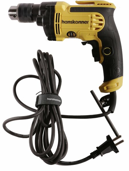 Дрель электрическая Hanskonner HID2175 — компактный и мощный электроинструмент, с кулачковым патроном и надежной конструкцией для сверления отверстий в различных материалах: пластик, дерево, сталь. Данная модель оснащена понижающим редуктором, что позволяет легко просверливать отверстия большого диаметра, а также размешивать строительные смеси, при наличии специальной насадки. В интересах длительности эксплуатации используются фирменные подшипники увеличенного ресурса и металлический корпус редуктора, способствующий качественному теплоотводу. Безударная конструкция инструмента позволяет минимизировать люфты, отчего становится возможным максимально точное сверление. Удобству в обращении способствует фиксатор-липучка кабеля и блокировка выключателя во включенном положении при длительных работах. Морозостойкий резиновый сетевой кабель длинной 4 м, позволяет охватит рабочую зону площадью 50 м2. Напряжение питания (В) 220Артикул HID2175Производитель HanskonnerСрок гарантии 2 годаДлина кабеля питания (м) 4Регулировка оборотов двигателя ДаМаксимальная мощность (Вт) 700Реверс ДаДиаметр патрона (мм) 13Диаметр сверления (металл/дерево/бетон) (мм) 13/25/-Количество скоростей 1Ограничитель скорости Да