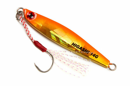 Пилькер классической формы Hayai jigu AH от компании Higashi. Оснащен ассист хуком с подмоткой люрекса и предназначен для ловли как пелагических, так и придонных видов рыбы. Вес, гр:14. Тип: Легкий.