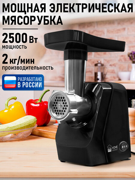 Мясорубка электрическая, с реверсом, 2500 Вт, диск для фарша 5мм. Мясорубка оснащена надежным электродвигателем, благодаря чему она справится с любой поставленной задачей. Прочный нож из высококачественной пищевой нержавеющей стали обеспечивает правильную рубку, измельчение любых видов мяса и других продуктов, сохраняя их структуру, микробиологические свойства и органолептические показатели на высшем уровне. Оптимальный диаметр отверстий решетки для приготовления фарша, обеспечит наилучший размер рубки фарша для разнообразных блюд и полуфабрикатов, будь то рубленый бифштекс или домашние котлеты, фрикадельки или фарш для пельменей, овощная икра или пикантный соус. Решетка и нож изготовлены из нержавеющей стали. Этот металл не окисляется и не вступает в реакцию с продуктами питания, что делает его полностью безопасным для здоровья человека. В мясорубке предусмотрена система защиты от перегрузки, что позволяет измельчать любые продукты, а также гарантирует ее работоспособность даже при попадании внутрь случайных предметов, защищая от заклинивания и преждевременного выхода из строя. Функция реверс обеспечит очистку мясорубки без разборки: если на нож намоталась жила, то можно сделать «обратный ход», убрать ненужный элемент мяса и продолжить работу. Механический фиксатор блока и прорезиненные ножки обеспечивают надежность сборки и устойчивое положение прибора во время работы. Оптимальный вариант для тех, кто много работает именно с мясными ингредиентами: классические фарши с разным содержанием мяса, паштеты или рубленное мясо. Девайсы для кухни – электро мясорубка – необычайно полезный прибор, для вкусного и здорового питания. Кухонный комбайн для дачи, мясорубка дешевая удобный гаджет для приготовления вкусной и здоровой пищи, для похудения. Техника для кухни бытовая техника отличный подарок на новый год или 8 марта! Приготовление блюд с использованием кухонная техника сделает ваши рецепты вкусными и полезными!