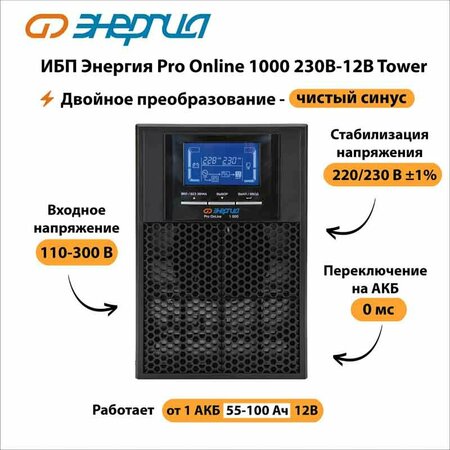 ИБП Энергия "Pro Online 1000", серия Tower, синусоидальный выходной сигнал