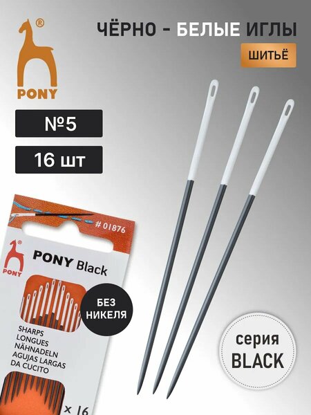 Иголки для шитья ручные c белым ушком Sharps BLACK № 5, 16 шт, стальные, PONY 01876