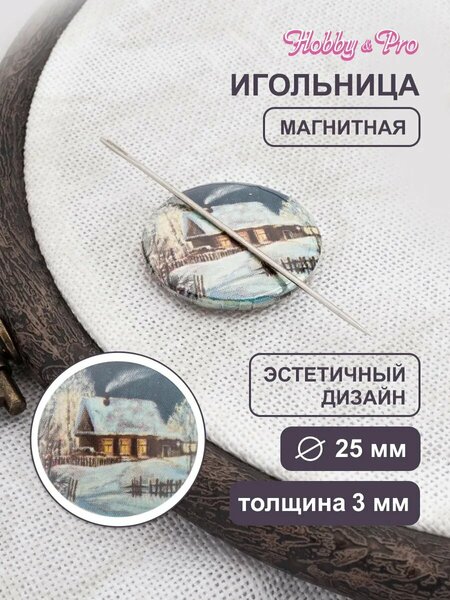 Игольница магнитная Hobby&Pro с красочной миниатюрой – удобная функциональная вещица и украшение вашего рабочего места. Игольница понравится всем любителям рукоделия, вышивания и шитья. Магнитная игольница легко удерживает иглу в процессе работы, также ею можно прикрепить схему к канве или к металлическому держателю. Разнообразие стильных современных дизайнов этих магнитов позволит подобрать магнит именно для вашего проекта и будет радовать вас на протяжении долгого времени. У вас устала рука во время работы или вам нужно взять на секунду ножницы - просто бросьте иглу на магнит, прикрепленный к канве, и он будет ждать вас для продолжения шитья. Следует обратить внимание, что встречаются иглы из нержавеющей стали, которые не магнитятся по своим свойствам. Все остальные иглы магнит будет с легкостью удерживать. Также рекомендуем фиксировать магнит на одном слое канвы. Большое количество слоев при подгибе по краям уменьшит степень фиксации иглы на магните. Размер игольницы: диаметр 25 мм, толщина 3 мм.
