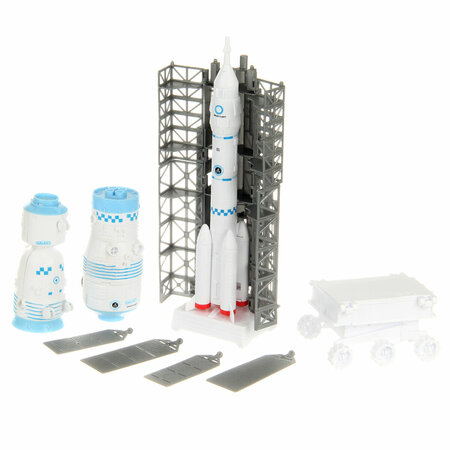 В наборе ракета, стартовый комплекс, марсоход, корабль спутник из двух частей, 4 солнечные панели. 9 предметов.