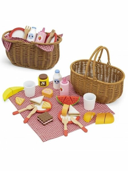 Отправляйтесь с друзьями на пикник с Деревянным набором для пикника от Viga! Корзина для пикника наполнена вкусными и полезными закусками, которыми можно поделиться и сделать поездку приятной. Красивая корзина для пикника из искусственного тростника наполнена полным набором деревянных аксессуаров из 26 предметов и тканью в клетку. В набор входят столовые приборы, тарелки и чашки, а также множество вкусностей, таких как вафли, бутерброды, мед и арбуз. Давайте есть! Благодаря прочным ручкам ваш ребенок может легко брать корзину для пикника с собой, куда бы он ни пошел. Некоторые продукты состоят из нескольких частей и склеиваются с помощью липучки. С помощью деревянного ножа ваш ребенок может отрезать свободные кусочки, что способствует развитию моторики вашего ребенка. Совместный пикник также способствует социальным контактам и навыкам, которые с ними связаны! Подходит для детей от 18 месяцев. Набор деревянных аксессуаров из 26 предметов: 2 чашки, 2 тарелки, 2 вилки, 2 ножа2 бутерброда, 2 рулета, 2 вафли, бисквит, бутылка молока, хлеб, арбуз, банан, мед, клубничный джем