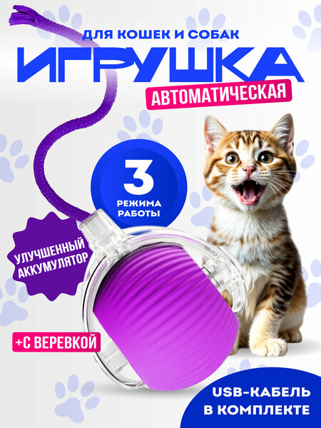 Игрушка для кошек интерактивная дразнилка Прекрасно подойдет для кошек, поможет развить ловкость и реакцию питомца. Эта игрушка идеальна для того, чтобы занять вашего питомца, когда вы не в доме. Кроме того, она поможет поддержать вашего питомца в отличной форме, улучшить контакт с хозяином и развить интеллект. Если вы ищете подарок для обладателей домашних питомцев, то рекомендуем обратить внимание на эту развивающую игрушку. Умный мячик Интерактивная игрушка для кошек способна дразнить вашего питомца, меняя траекторию движения, обходя препятствия и создавая непредсказуемые вибрации. Ваша кошка будет в восторге от такой разнообразной игровой палитры! Светится и вибрирует! Дразнилка для кошек обладает яркими цветами, привлекательными звуками и интересными текстурами, чтобы вдохновить вашу кошку на игру и активное движение. Игрушка имеет 3 режима работы: 1 режим. Быстрый режим работы (постоянный синий свет ) 2 режим. Интерактивный режим работы (постоянный желтый свет): автоматический переход в режим ожидания после 5 минут работы, повторно активируется после касания (толкания). То есть Ваш питомец может самостоятельно запускать процесс игры, который длится до 4х часов. 3 режим: Медленный режим работы (постоянный фиолетовый свет) Можно выбрать разные цвета! Заказывайте игрушку для кошек интерактивную и автоматическую прямо сейчас и предоставьте вашему питомцу уникальный опыт игры и развлечения. В нашем магазине большой ассортимент товаров для животных, так что вы можете выбрать и другие интересные товары для вашего питомца. Не упустите возможность порадовать своего кота и сделать его жизнь веселее и интереснее!