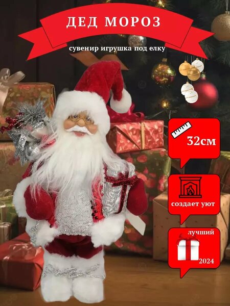 Новогодние праздники все ближе, поэтому главные символы года – Дед Мороз и Снегурочка, уже выехали, чтобы подарить вам праздник и волшебную атмосферу! Фигурка новогодняя Дед Мороз под елку оживит интерьер вашей комнаты и усилит ощущение праздника. Вы можете расположить тематические новогодние фигурки не только под елкой, но и в других местах дома, офиса или своего заведения – Дед Мороз никого не оставляет без праздника, будь то взрослый или ребенок! Добрый Санта Клаус под елкой или на камине добавит праздничной атмосферы, порадует детей и напомнит взрослым о том, почему в Новый год все ждут чуда. Игрушка под елку детально проработана: Дед Мороз носит очки, аккуратную шубу с вышивкой, бороду и, конечно, мешок с подарками! Новогодний Дед Мороз или Санта Клаус под елку станет изюминкой в праздничном декоре или даже основным напоминаем о празднике, если вы не планируете масштабно украшать комнату. Даже в самом обычном, повседневном интерьере, новогодние фигурки делают интересный акцент на приближающихся торжествах и непременно поднимают настроение! Выберите, какие игрушки под елку или для общего декора подойдут именно вам: Дед Мороз и Снегурочка в ассортименте нашего магазина одеты в разные костюмы, поэтому вы сможете выбрать как классический вариант с красным цветом, так и более экстравагантный – например, Дед Мороз под елку может быть в синем костюме, снежно-белой шубе или даже в темном одеянии. Санта Клаус может принести с собой фонарик или лыжи – посмотрите, какое сочетание цветов будет гармонировать в вашем интерьере, и разнообразьте новогодние фигурки – герою обязательно потребуется очаровательная спутница Снегурочка из русских сказок. Санта Клаус станет олтичным подарком. Дед Мороз станет отличным подарком для детей и взрослых, которые ценят традиционные новогодние символы и хотят создать атмосферу праздника в своем доме. Подарите радость своим близким с помощью этой прекрасной игрушки!