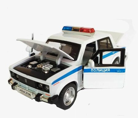 Игрушка машинка ВАЗ 2106 полиция Жигули металическая масштаб 1*32 с световыми и звуковыми эффектами