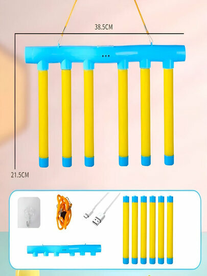 Эта игрушка представляет собой «Сенсорную игрушку для проверки координации и скорости». Дизайн: Ширина 38,5 см, высота 21,5 см. Основная опора и 6 ручек. Функциональные возможности: Управляется кнопками. Имеет внутреннюю перезаряжаемую батарею. Питание от USB. Материал и безопасность: Используются ручки из мягкого материала. Преимущества для пользователя: Инструмент для развития рефлексов и скорости рук для детей. Делает упражнения веселыми и интерактивными. Аксессуары: В комплект поставки входят цепочка, крючки для настенного крепления и USB-кабель для зарядки. Этот продукт больше предназначен для детей или тех, кто хочет превратить упражнения в игру.