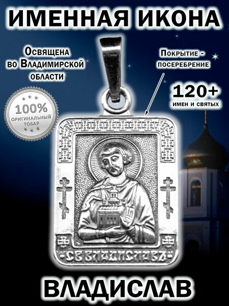 Предлагаемая именная нательная икона для мужчин и женщин является настоящим ювелирным украшением. На груди такие изделия смотрятся изумительно и дорого. Лик небесного покровителя выполнен способом литья с использованием технологии обработки мельхиора и последующего серебрения. Изделия из этих материалов в уникальном дизайнерском исполнении могут стать памятным подарком, а также будут служить как оберегом так и украшением. Гравировка, литье по современным технологиям - все это объединено, чтобы создать неповторимый образ талисмана, который будет оберегать человека. Срок службы нательных икон соответствует обычным ювелирным ценностям. Производство продукции ведется в соответствии с библейскими и церковными канонами. Для выбора иконки важно знать имя по святцам - то имя, которое дано человеку при крещении. Обычно оно совпадает с празднованием величания Святого по православному календарю (или близкое по дате). Иконка создана вручную лучшими мастерами России. Именная нательная икона иконка кулон медальон на шею покрытие серебром с именем Владислав Сербский