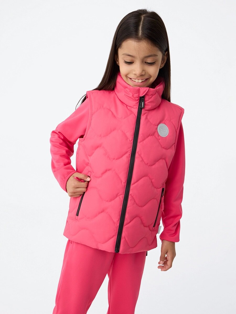 В этом жилете маленькие исследователи смогут отправиться на поиски приключений даже в прохладную погоду. Он рассчитан на температурный режим от +5 до -10 ℃. Неважно, идет снег или моросит дождь, ребенок будет чувствовать себя комфортно благодаря водонепроницаемому материалу. Наполнитель «пух-перо» согревает и отводит влагу — ребенок не замерзнет и не перегревается во время активных игр. А высокая горловина и эластичная резинка на манжетах дополнительно защитят от ветра. Долгие сборы на улицу остались в прошлом: жилет легко надевается и снимается благодаря гладкой подкладке. Можно заниматься важными детскими делами с полной отдачей: Светоотражающие детали делают вечерние прогулки более безопасными, обеспечивая видимость ребенка в темное время суток Эластичный материал не сковывает движений: можно бегать, прыгать, взбираться на горку В карманах на молнии можно согреть руки, а еще это отличный тайник для детских сокровищ.