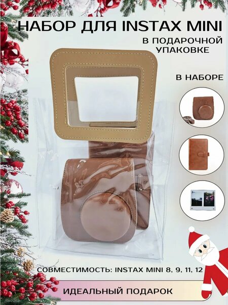 Набор аксессуаров для Instax mini 12, 9, 11, 8 Набор аксессуаров для фотоаппарата моментальной печати INSTAX MINI 12: 1) Чехол для камеры INSTAX MINI магнитный с кармашком для фото 1шт. 2) Альбом для фотографий на 98 кадров 1шт. 3). Магнитная рамка прозрачная орг. стекло для 2 снимков 4). Подарочный пакет