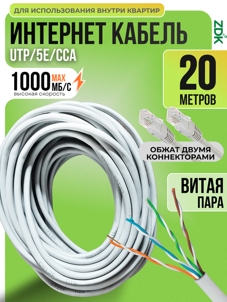 Интернет-кабель LAN витая пара ZDK Внутренний CCA (20 метров)