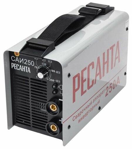 Инверторный сварочный аппарат Ресанта САИ-250 станет хорошим помощником в сварочных работах дома или на производстве. Одна из самых оптимальных моделей с прекрасным соотношением габаритов и мощности. Простая регулировка, плавное изменение тока, компактный корпус – работа с этим аппаратом приносит только положительные эмоции. Широкий ремень позволяет удобно носить аппарат на плече. Особенности: - Построен на IGBT транзисторах - Оснащен функциями «ANTI STICK» (антизалипание) и «HOT START» (горячий старт) - Класс защиты IP 21 - Использование электродов диаметром до 6 мм - Максимальный потребляемый ток от сети 38.4 А - Напряжение холостого хода 85 В - Небольшие размеры - Малый вес - Плавная регулировка силы тока - Принудительное туннельное охлаждение - Металлический корпус - Вентиляционные отверстия на корпусе - Индикация включенного состояния - Термозащита Технические характеристики: - Напряжение питающей сети: 140-260 В - Частота питающей сети: 50 ГЦ - Потребляемый ток: 38,4 А - Потребляемая мощность ММА: 9,5 кВт - Максимальный сварочный ток MMA: 250 А - Диапазон регулирования сварочного тока MMA: 10-250 А - Рабочее напряжение ММА: 10,4 - 30 В - Напряжение холостого хода: 85 В - ПН (40°C): 70% - Коэффициент мощности: 0,7 - КПД: 80% - Максимальный диаметр электрода MMA: 6 мм - Класс изоляции: Н - Класс защиты: IP21 - Antistick - Hot Start - Регулируемый форсаж дуги - Диапазон температуры эксплуатации: -20.+50°С - Тип источника питания: инверторный