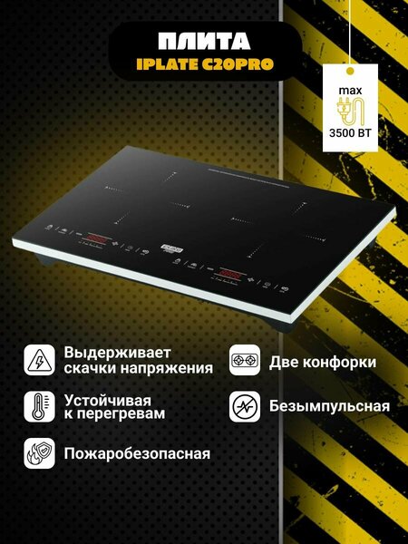 iPlate C20 PRO – это не просто индукционная плита, а продуманное решение для современной кухни, сочетающее в себе высокую функциональность, безопасность и стиль. Варочная панель электрическая 2 конфорки зарекомендовала себя как надежный помощник в приготовлении пищи как для профессиональных поваров, так и для домашних кулинаров. Уникальные особенности:
